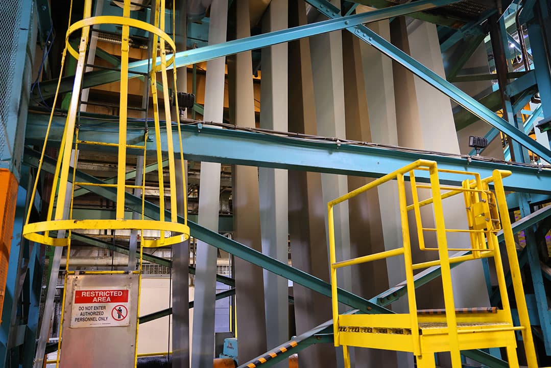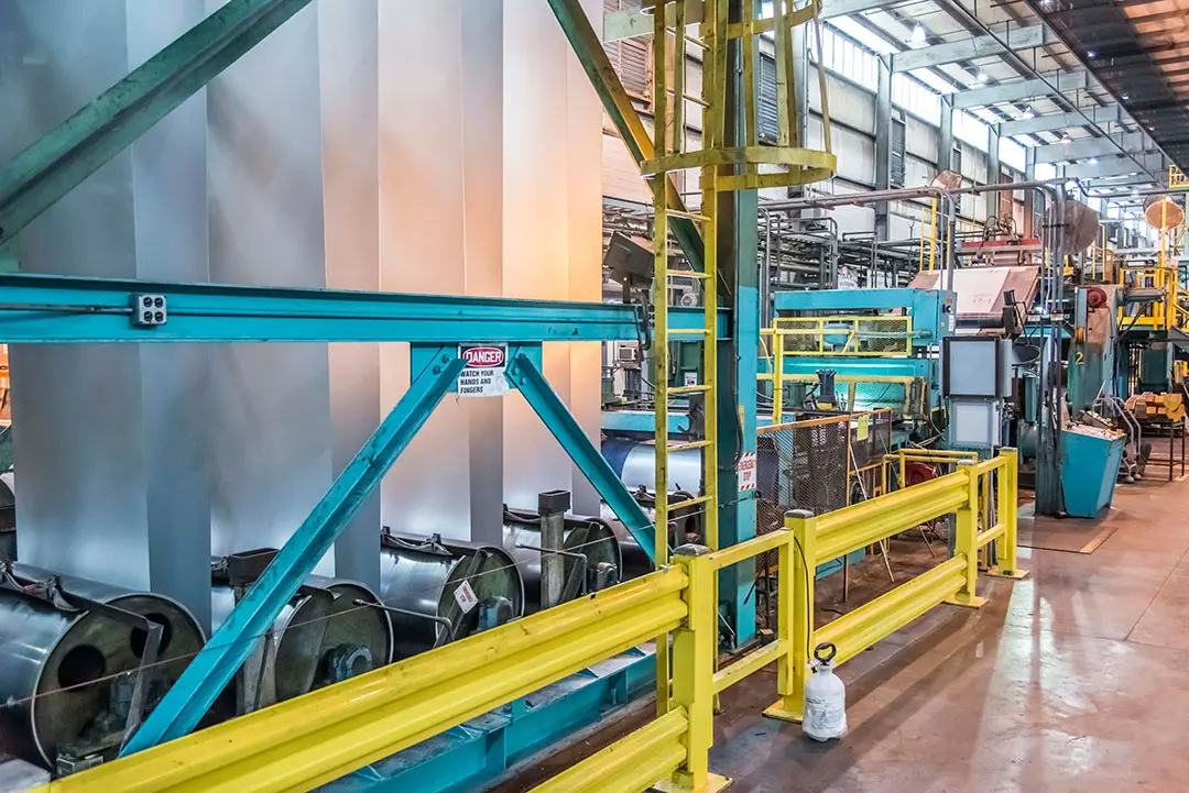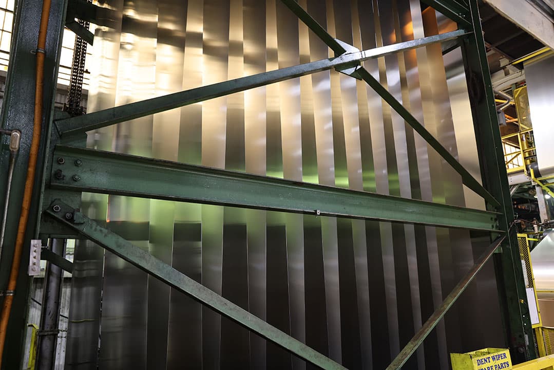 Once the metal is cleaned, treated, and painted, the strip is rewound into a coil size prescribed by the customer. From there, the coil is removed from the line and packaged for shipment or additional processing.